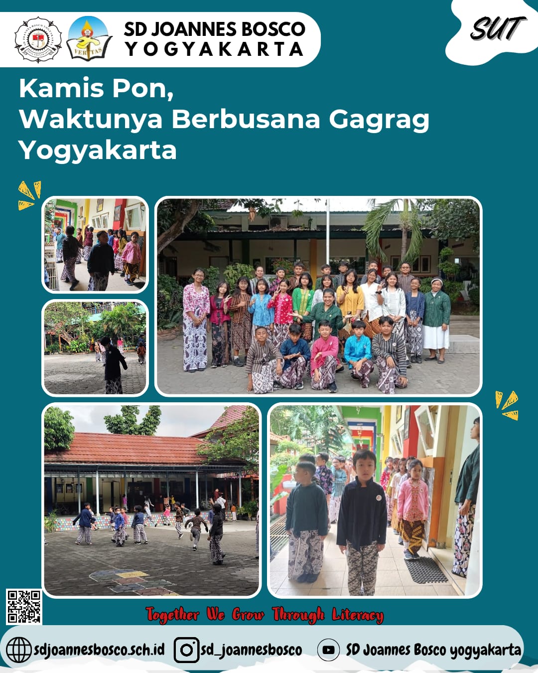Program “Kamis Pon Berbusana Gagrag Yogyakarta” menjadi salah satu wujud nyata komitmen SD Joannes Bosco Yogyakarta dalam membentuk generasi muda yang berkarakter, berbudaya, dan bangga sebagai bagian dari masyarakat Yogyakarta. Dengan semangat “Together We Grow Through Literacy,” sekolah terus mengajak peserta didik untuk tumbuh menjadi pribadi yang cerdas, berakhlak, dan berbudaya.