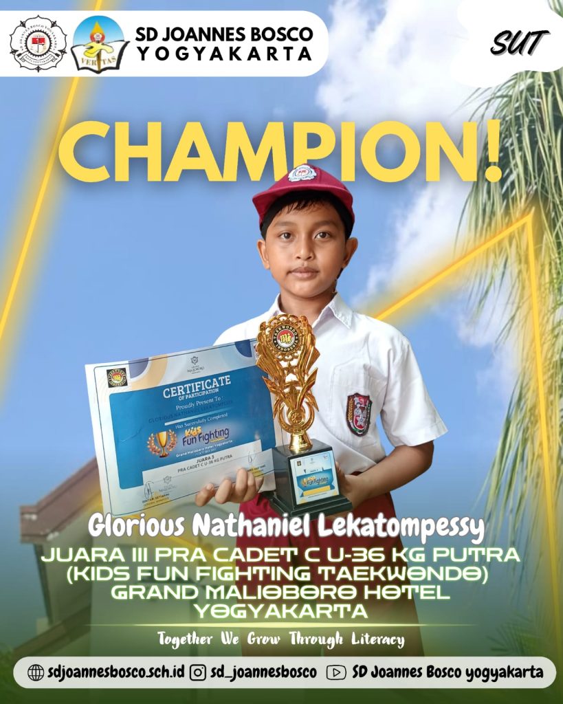 Sementara itu, Glorious Nathaniel Lekatompessy membawa pulang Juara III Pra Cadet C U-36 Kg Putra dalam ajang Kids Fun Fighting Taekwondo di Grand Malioboro Hotel Yogyakarta. Ketekunan dan semangat sportivitas Glorious menjadi contoh nyata bagi teman-temannya dalam berkompetisi secara sehat.