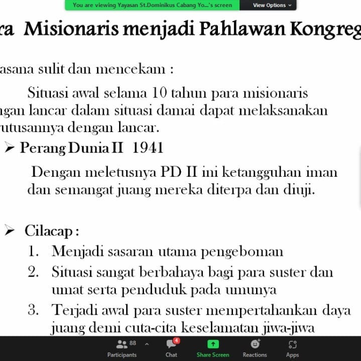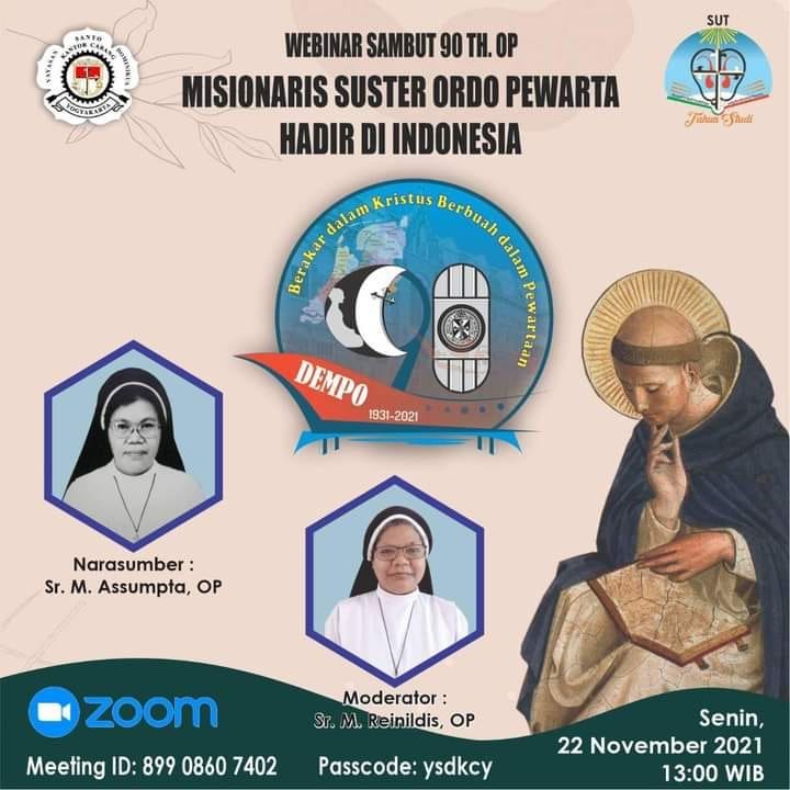 Menyambut 90 tahun Ordo Pewarta hadir di Indonesia, YSDKCY bersama nara sumber yang terhormat Sr. M. Assumpta,OP dan moderator Sr. M. Reni, OP membersamai seluruh Guru Dan Karyawan di Yayasan Santo Dominikus Kantor Cabang Yogyakarta dalam Webinar Misionaris Ordo Pewarta Berkarya di Indonesia. Untaian cerita sejarah yang sangat mengesan memberi makna dan semangat tersendiri bagi kami. Selamat menyambut 90 tahun berkarya di Indonesia untuk keluarga besar Ordo Pewarta dan Yayasan Santo Dominikus. Jejak langkahmu akan selalu berlanjut.